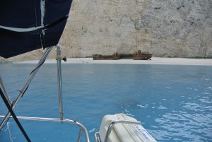 Nach einer ruhigen Nacht folgte ein früher Aufbruch zur Westseite von Zakynthos, wo wir am Vormittag bei der berühmten Shipwreckbay eintrafen. Als die ersten Sonnenstrahlen die morgendichen Schatten aus dieser imposante Bucht drängten, kamen die Ausflugsschiffe und wir setzten unseren Törn entlang der wilden Zakynthos Westküste Richtung Süden fort.