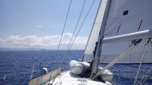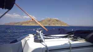 Ich startete sehr zeitig im Morgengrauen denn für die nächste Etappe nach Limnos hatte ich ca 10 Stunden geplant. Die Überfahrt war bei wenig Wellengang und mäßigem Wind. Ich hätte eigentlich  den Parasailor setzen wollen, doch die Bedingungen passten wieder nicht.
