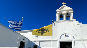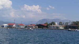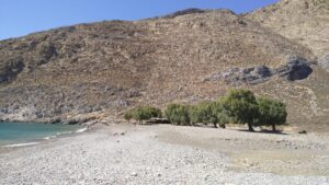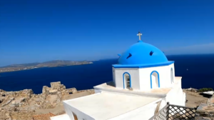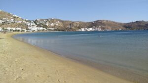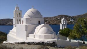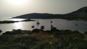 Ein wunderbarer Ankerplatz mit Badestrand, einigen Häusern und Tavernen, sowie einem kleinen Kai mit einer kleinen blau-weißen Kirche. Sehr idyllisch, aber bei anderen Seglern auch begehrt. Bis zum Abend ankerten über zehn Schiffe. Ich war wieder im Bereich des Chartertourismus zurückgekehrt.