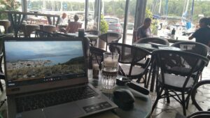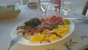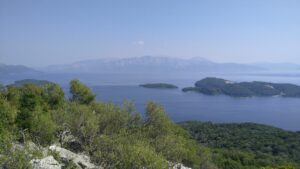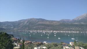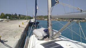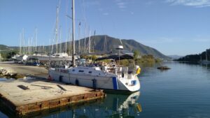 Danach hatte ich nur 12NM bis Meganisi, wo ich traditionell in der kleinen Karnagio Bucht anlegte. Kurz darauf ging ich bereits die 5km rüber nach Spartochori um mich mit Uli (SY Andante), einem Seglerkollegen, zu einem Nachmittagstratsch zu treffen. Wir kennen uns seit zwei Jahren und lesen immer wieder in der FB Gruppe „Griechenlandsegler“ voneinander. Es gab genug zum Erzählen, die Zeit wurde uns zu knapp.