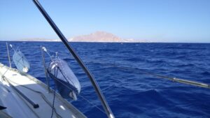 Gleich nach der Hafenausfahrt setzte ich die Segel und fuhr mit gutem Speed auf der wellengeschützten Südseite von Kos Richtung Westen. Kurz vor dem westlichsten Zipfel von Kos reffte ich die Segel, denn bei diesen Kap`s gibt es öfters Starkwind. Es war zwar nicht ganz so böig, aber sobald ich draußen in der offenen Ägäis war gings zur Sache. Die Wellen hatten bald stattliche Höhen und der Wind blies stetig mit 15-22Kn von NNW. Ich hatte es mit etwas gemütlicher vorgestellt, denn das war mehr als prognostiziert. Aber was soll`s, das Leben ist kein Wunschkonzert. Es lagen etwa 30NM zur Insel Astipalea vor mir, welche meine Magennerven ganz schön beanspruchten. Permanente Schräglagen bei 6-7Kn Speed und in regelmäßigen Abständen ein Wasserschwall über die Sprayhood, es war etwas mühsam. Ca 6 Seemeilen vor meinem Ziel, der kleinen Marina Astipalea, fielen plötzlich Autopilot, Tiefenmesser und Windanzeige aus. Keine Anzeige auf den Display`s. Der Kartenplotter funktioniert zum Glück noch. Jedoch musste ich ans Ruder und durfte bei Wellen bis 2m ganz schön kurbeln. Nach etwa 4NM kam ich endlich in die Abdeckung der Insel und konnte nun in ruhigerem Wasser bis zur Marina segeln. Den Marinero hatte ich vorher angerufen und so wusste ich, dass noch ein Platz frei war. Im kleinen Hafenbecken gab es deutlich weniger Wind, mein Anlegemanöver passte (Buganker, mit dem Heck zum Kai) sehr gut und der Anker hielt. Aufgrund der Starkwindprognose für die nächsten Tage, werde ich hier einige Zeit verbringen. Beim Autopilot hatte sich übrigens lediglich bei einer Kabelverbindung das Pluskabel gelöst, weshalb das Gerät keinen Strom erhalten hatte….