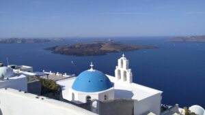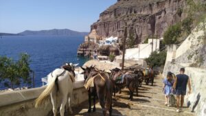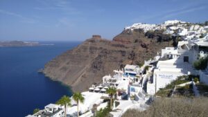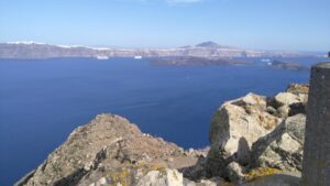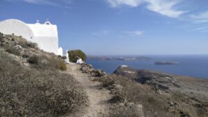 Ich nahm zwei Nächte, konnte so am ersten Nachmittag die Insel Thirasia erkunden und fuhr am zweiten Tag früh morgens mit der Fähre (2€) hinüber nach Santorin Old Fira.
