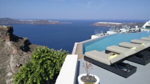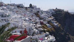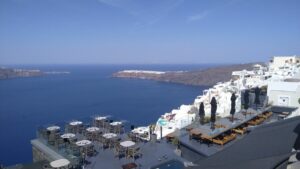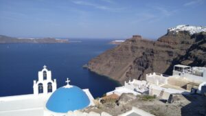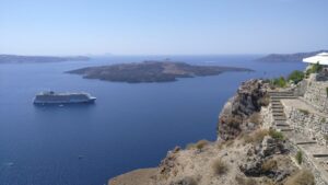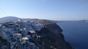 Dort hatte ich reichlich Zeit die Toptourismusregion von Griechenland zu erkunden. Es ist wirklich beeindruckend, vor allem am Vormittag, wo es noch nicht so heiß ist und die Massen an Touristen erst schön langsam eintrudeln. Ein Fotomotiv nach dem anderen und jede Menge Aussicht. Nach ein paar Stunden mit einigen Kilometern durch die engen Gassen, entlang steiler Hänge, hatte ich mich aber sattgesehen und freute mich bereits auf die Ruhe bei meinem Liegeplatz. Die Fähre war am späten Nachmittag retour, endlich ein Sprung ins Wasser!