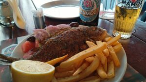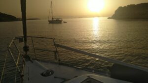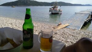 Es war Samstag und dementsprechend fehlten viele Charterboote (da diese am Wochenende immer Crewwechsel haben). Im Gegensatz zum Vorjahr zu dieser Zeit war viel weniger los, direkt ruhig. Auch am nahen Mühlenstrand, wo ich mich schon auf mein traditionelles Nachmittagsbier freute. Dieser Platz hat irgendwie eine magische Ausstrahlung für mich, oder es ist einfach das gute Gefühl die Saison wieder einmal ohne Probleme geschafft zu haben. Von hier sind es ja nur mehr 20NM bis Nidri.