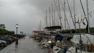 Die angekündigten Gewitter waren zwar nicht ganz so stark, aber ein paar Boote, welche außerhalb des Hafens längsseits am Kai lagen hatten echte Probleme mit plötzlich auftretendem Starkwind und entsprechenden Wellen. Die Calisto lag relativ ruhig, obwohl auch hier zu Beginn ein paar kräftige Böen die gesamte Bootsreihe in Schräglagen brachten. Zeitweise schüttete es, insgesamt aber ebenfalls weniger als erwartet. Auch die nächsten drei Tage waren äußerst unbeständig, weshalb ich insgesamt 4 Tage blieb. Es gab aber keine Langeweile, denn mit meinen Schreib- Foto- und Filmarbeiten war ich eh beschäftigt. Zusätzlich noch ein paar mal laufen und wandern. Die Zeit verging sehr schnell.