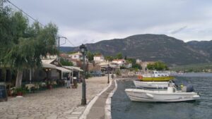 Zum Glück fand die Party der Jugend heuer nicht auf meinem Steg statt, weshalb die Nacht halbwegs ruhig verlief und ich ausgeruht meine nächste Etappe nach Galaxidi startete. 38NM über glattes Wasser bei sommerlichen Temperaturen. Vor Galaxidi wurde ich etwas nervös, denn es schien so, dass drei Katamarane vor mir ebenfalls dort einfahren wollen und es eventuell Platzprobleme geben könnte. Diese Angst war aber unbegründet. Die „Marina“ war gut belegt, aber nicht voll und bald lag ich zwischen einer deutschen und einer französischen Crew gut verankert am Kai. Aufgrund der Wettervorhersage (Warn SMS wegen STARKGEWITTER) hatte ich gleich für drei Nächte bezahlt (gesamt 17,5€) und werde hier ein paar Tage bleiben.