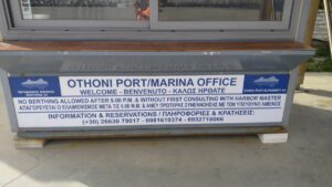 Fritz kam wie geplant, wir blieben noch einen Tag und starteten am 1. Mai Richtung Norden. Zuerst zur Tankstelle bei der Gouvia Marina, dann weiter bis Othoni. Eine gemächliche Fahrt mit ein paar Segelmeilen im Norden von Korfu. In Othoni gingen wir im kleinen Hafen beim Steg längsseits (23€/N) spazierten noch etwas in der äußerst ruhigen und fast unbewohnten Ortschaft (eigentlich nur eine Häuseransammlung) herum. Es gab weder ein offenes Geschäft, oder ein Lokal. Also selbst kochen. Bei uns ist das so, ich kümmere mich ums Schiff, Fritz hat den Küchenbereich und erstellte mit den vorhanden Mitteln ein vorzügliches Abendessen.