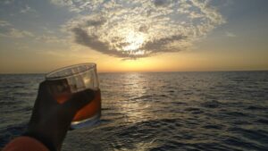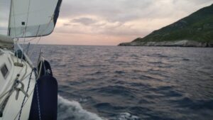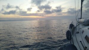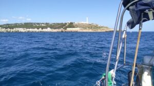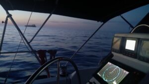 Etwas ungewohnt die ganze Sache, aber eigentlich perfekt, denn es gab kaum Wellen und um die Segel musste ich mich auch nicht kümmern. Lediglich das monotone Gebrumme des Motors war permanent vorhanden. Südlich von Sizilien verläuft ja die Route der Großschifffahrt und dies ist auch mit dem AIS sehr gut erkennbar. Etwas mühsamer waren jedoch die Fischerboote. Diese verwendeten kein AIS und sind nur auf dem Radar zu sehen gewesen. Zusätzlich weiß man bei denen nie ob sie den Kurs ändern, bzw. was sie vor haben. Ich lag deshalb die halbe Nacht „stand by“ und bin nur ab und zu eingenickt. Um drei Uhr stand ich dann auf, machte mir einen Kaffee und begab mich wieder hinaus. Der Mond schien und das Meer war spiegelglatt. Allerdings war es feucht und kühl. Mit der richtigen Adjustierung konnte ich es gut aushalten und sah dem kommenden Morgen zu. Das ist eigentlich der schönste Zeitraum bei einer Nachtfahrt, ansonsten hält sich bei mir die Begeisterung für Nachtfahrten in Grenzen, aber vielleicht müsste ich es nur öfters machen…..