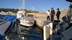 Am nächsten Morgen starteten wir sehr zeitig um die lange Etappe nach Roccella Ionica nicht allzu spät zu beenden. 46NM entlang der Küste, kein Segelwind (leichter Gegenwind), kühl und eher langweilig. Die Marina in Roccella ist ziemlich groß und sehr professionell geführt (50€/N). Dort blieben wir zwei Tage und trafen hier erstmals Bootsbesatzungen die so wie wir unterwegs waren, allerdings in der Gegenrichtung. Das hatte für uns den Vorteil, dass wir ein paar aktuelle Infos bekamen, dafür half ich beim griechischen eTepai (online Registrierung GR).