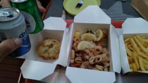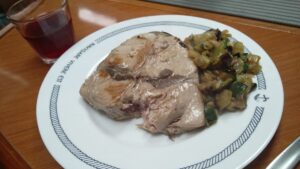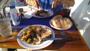 Es war eine lange Fahrt und erst am frühen Abend gelangten wir in die angepeilte Marina. Diesmal gab es frische Thuna-Steaks mit Gemüse als Abendessen. Ein königliches Mal.