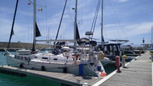 Dann zog es uns wieder weiter. Eine kurze Etappe bis Marsala (ca 65.000 EW), wo wir zuvor an der Südseite von Favignana noch einen Badestopp im türkisen Wasser einlegten. Die Strömung war dort ganz schön heftig, weshalb ich am Heck ein Seil befestigte, wo man sich anhalten konnte. Danach segelten wir gemütlich rüber nach Marsala. Ich hatte in der Marina Mothia reserviert. Erst nach dem Vorhalt, dass es kein Wasser gab und die Sanitäranlagen nicht funktionierten, konnte ich den Preis von 70€ auf 50€/N runter handeln. Ansonsten war es aber okay. Ich hätte ja auch außerhalb des Hafens ankern können, aber irgendwie ist es mir in Marinas lieber. Kein Herumgetue mit dem Beiboot und auch nicht die Gefahr, dass das Beiboot abhanden kommt. Man hört schon ab und zu so Geschichten, wo diese kleinen Boote während des Landaufenthaltes gestohlen wurden.
