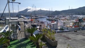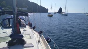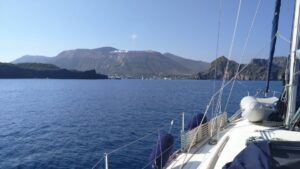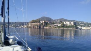 In der Nacht lagen wir sehr ruhig, manchmal prasselte noch immer Regen aufs Kajütdach. In der Früh war es aber bereits besser und wir starteten Richtung Liparische Inseln (Äolische Inseln). Es gab kühlen Wind bis 20Kn aus WNW. Wir mussten ganz hart am Wind segeln und 5NM vor Lipari hatten wir strammen Gegenwind. Unser Ziel war die sehr gut geschützte Marina Pignatoro wo ich für zwei Tage (40€/N) reserviert hatte.