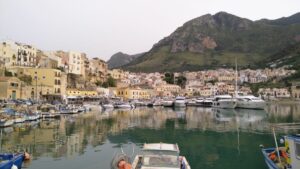 Am nächsten Tag ging es gemütlich weiter. Um das Kap herum und westwärts zu den Ägadischen Inseln, wo wir an frühen Nachmittag im kleinen Hafen Favignana anlegten. Eine malerische Kulisse mit türkisem Wasser eingerahmt von einer kleinen Ortschaft mit allem was dazu gehört. Wir hatten in der Marina (Mooring Francesco) vorreserviert, aber es wäre noch genug Platz gewesen. Erst gegen Abend wurde es voll. In der Vorsaison geht es hier sehr locker zu. Leider zahlten wir auch jetzt schon 60€/N, blieben aber trotzdem drei Tage. Einerseits weil tags drauf stärkerer Wind wehte und an den Ankerplätzen noch länger Schwell herrschte, andererseits weil es uns hier echt gut gefiel.