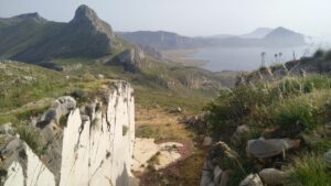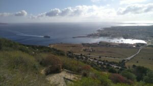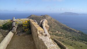 Nach einer kurzweiligen Fahrt erreichte ich einen kleinen Parkplatz und wanderte etwa 500Hm auf einem sehr gut gekennzeichneten Pfad zum Montagna Grande 836m. Obwohl die Insel nicht sehr groß ist, gibt es hier ein ausgezeichnetes Wanderwegnetz. Ich sah sogar mehrmals Moutainbiker und Wanderer kamen mir auch entgegen. Das hatte ich in dieser „Dichte“ noch bei keiner Mittelmeerinsel gesehen. Super Ausblick von oben, wo in der Ferne bereits Afrika/Tunesien sichtbar war.