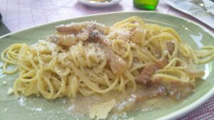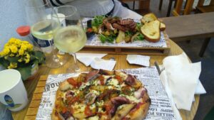 Als es am Nachmittag doch noch schön wurde, nahmen wir die Wanderschuhe und besteigen den alles dominierenden Felsberg „Monte Monaco“. Ein herrlicher Ausflug mit gut 500Hm und 13Km Fußmarsch. Zurück beim Abendessen war es dann schon dämmerig.