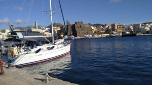 Bei starker Bewölkung und immer wieder kleineren Regengüssen näherten wir uns dem Hafen Milazzo, wo wir in der bewachten Marina Del Nettuno (75€/N) sehr gut lagen. Unsere teuerste Marina bis jetzt, es gibt aber kaum Alternativen. Erstmals in Sizilien! Eine sehr schöne Stadt, vor allem wenn man zur Burg hinauf geht. Ein COOP Supermarkt befindet sich auch in Hafennähe.