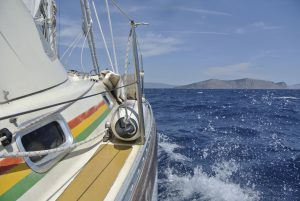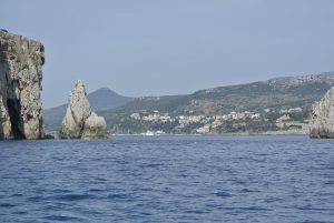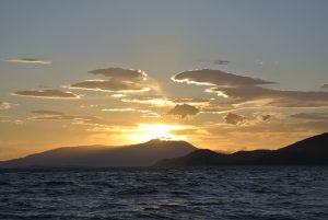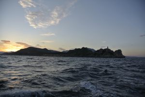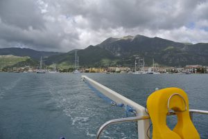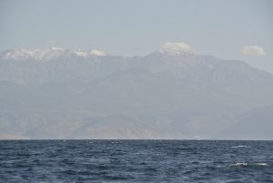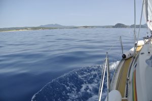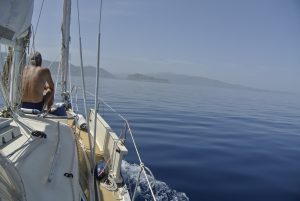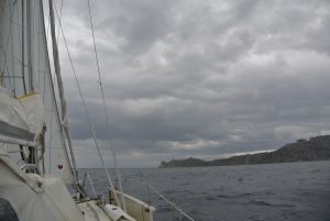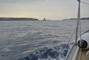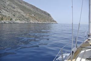 Da die Wettervorhersage so halbwegs in Ordnung war folgte die Weiterfahrt im kommenden Morgengrauen. Bereits um 6 Uhr gings los, eine lange Etappe nach Südosten bis Porto Kagio folgte. Großteils hart am Wind mit Motorunterstützung, damit wir die 60 Seemeilen in einer guten Zeit absolvieren konnten. Vom Wind wars ganz ok, aber die Wellen hätten ein bisschen kleiner sein können… Dafür entpuppte sich Porto Kagio als toller Ankerplatz. Echt lässig hier…