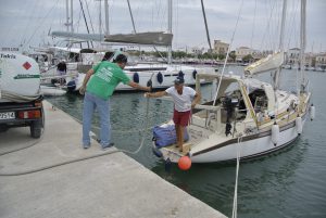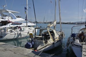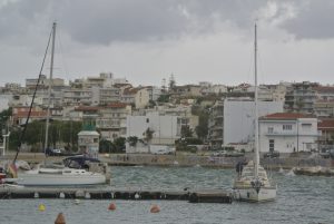 Obwohl die Wettervorhersage eigentlich sehr durchwachsen war starteten wir abermals kurz nach 6 Uhr. Unser Ziel war Aegina, wobei wir auch Alternativen eingeplant hatten. Zuerst noch sehr beschaulich, jedoch nach ca. einer Stunde begannen Gegenwind & Wellen. Mit etwas weniger Schub, geringerer Geschwindigkeit und dem Vollverdeck war es aber ganz passabel. Der Wind legte sich nach Poros und gegen Mittag legten wir im Hafen Aegina vor Buganker bei der Südmole an (4,75€). Ziemlich gefinkelt hier, denn die Mauer ist zu unrein um knapp ran zu fahren. Mit der richtigen Taktik jedoch kein Problem. Im Ort Aegina gibt es einigen Tourismus, wobei hier auch viele Griechen aus dem Nahbereich von Athen präsent sind. Das sieht mach auch im nautischen Bereich, denn fast alle Plätze sind von griechischen Booten belegt.