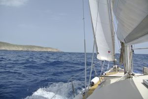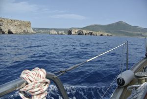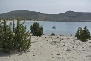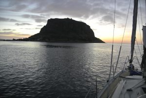 Der Wettergott meinte es gut mit uns, und so folgte wieder ein Frühstart mit der Etappe nach Monemvasia. Bei sehr ruhiger See zuerst Richtung Osten bis zur tollen Doppelbucht bei Elaphonisos.