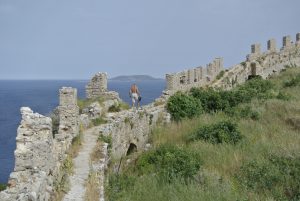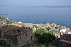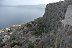 Danach konnte ich endlich (vor zwei Jahren musste ich windbedingt beim Boot bleiben) die Halbinsel Monemvasia mit dem restaurierten Dorf besichtigen. Bei Windstille, Sonnenschein und ca 30 Grad wanderten wir durch die engen Gassen, sowie knapp 200 HM bis zum Gipfel dieses Felsmugels. Wirklich sehenswert und faszinierend, was sich hier vor Jahrhunderten abgespielt haben muss.
