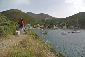 Meile um Meile wurde es besser und ab dem späten Vormittag war überhaupt Windstille – nach den turbulenten Vortagen eine Wohltat. Wir erreichten die Insel Trizonia am Nachmittag und fanden sehr leicht einen geschützten Längsliegeplatz. Hier gefällt es mir immer wieder. Eine Laufrunde, Abendessen, schreiben und ab in die Koje.