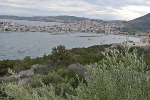 Es hat gepasst, und so sind wir bereits um 06.30 Uhr Richtung Süden und waren bis 17.00 Uhr mit Motorunterstützung unterwegs. Die angenehme 60 Seemeilen-Fahrt endete im Hafen Pylos wo wir neben der Slipanlage einen Platz fanden. Seit meinem Törn vor zwei Jahren hat sich hier kaum etwas verändert. Die „Marina“ ist noch immer zur freien Benützung und niemand kümmert sich drum.