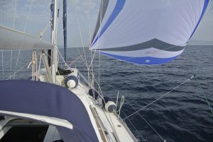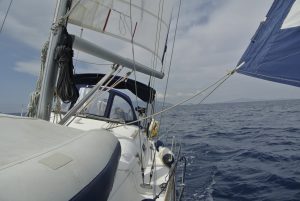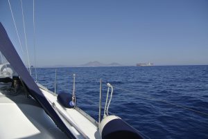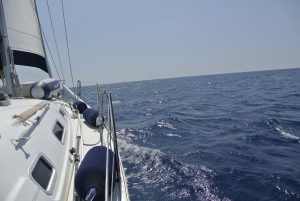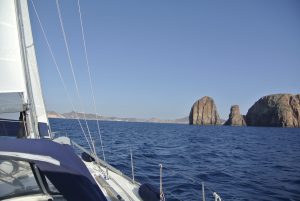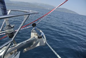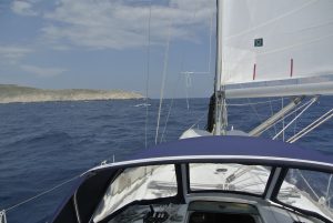 Wenn wir so unterwegs sind, haben wir die Segel bei passendem Wind natürlich gesetzt, wobei wir uns aber nicht scheuen den Motor anzuwerfen, sobald die Kraft der Natur nachlässt, oder Wind gegenan steht. Unser Tagesziel waren diesmal die sehr kleinen Strophaden-Inseln welche knappe 30 NM westlich der Peloponneswestküste mitten im Ionischen Meer liegen. Unterwegs hatten wir erstmals tollen Segelwind, welcher die CALISTO bis zu 7 Knoten beschleunigte.