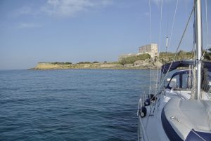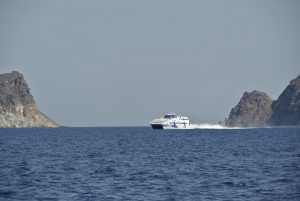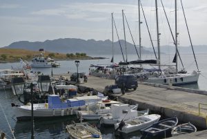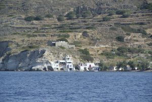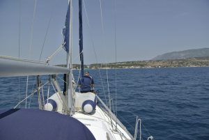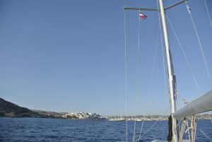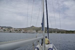 Das nächste Ziel war die mir unbekannte Insel Kythera im Südosten des Peloponnes. Zuerst andauernde flaue Winde und am Nachmittag das gewohnte Aufbrisen. Es war eine Reise ins Nichts, zumindest dort wo wir stoppten (Diakofte) sah alles wie ausgestorben aus. Wir lagen längsseits am Fährkai, doch der Wind (bis 25 Kn) stand genau auf unseren Bug und hatte die gesamte große Bucht um Wellen aufzubauen. Die Nacht wurde sehr unruhig… und der Aufbruch am nächsten Morgen war zeitig.