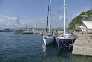 Im Hafen liegt man vor Buganker mit Heck zur Mole. Außer uns waren noch drei weitere Segler, bzw. zwei Dauerlieger am Hafenkai. Die Stadt bietet im Hafenbereich Restaurants und Cafe`s, sowie alle Dinge die man halt so braucht. Wir blieben den nächsten Tag, besorgten die Batterie, sowie 20L Diesel und spazierten auf den Dorfhügel. Der Motor sparng mit der neuen Batterie wieder super an. Dieser Aufenthalt war zwar ungeplant, jedoch äußerst angenehm.