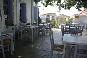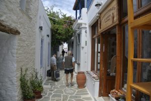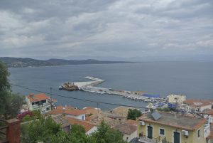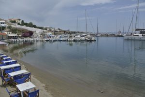 Den nächsten Tag verbrachten wir mit einer Sightseeing-Inselerkundungstour auf Motorrollern (je 15€). Es gibt einige interessante Buchten, jedoch außer unserem Hafen nur den kleinen Ort Loutra im Nordosten der Insel, wo an der Mole ein paar geschützte Plätze für Segler vorhanden sind.