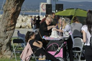 Nachfolgend kam der Hafen Korinth wo wir in der nach wie vor unbewirtschafteten „Marina“ wie im Jahr zuvor auf der Stirnseite eines Schwimmsteges längsseits anlegen konnten. Es war Samstag und im Hafenbereich bereiteten sich zig Hundebesitzer auf ihren Auftritt am Abend vor. Ein Hundeschönheitswettbewerb mit internationaler Beteiligung, vom kleinen „Schlecksi“ bis zum Riesen mit knapp 100 kg. Sehr interessant und teilweise skurril anzusehen.