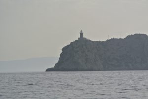 Der nächste Morgen hatte eine negative Überraschung, denn der Motor sprang nur zögerlich an. Wir hatten offensichtlich ein Batterieproblem, legten aber doch ab, fuhren an Methoni vorbei immer weiter südöstlich bis zum Kap Tainaron, wo wir dann Richtung Norden abbogen um nach Gytheon zu gelangen. Dort gibt es sicher eine neue Batterie.