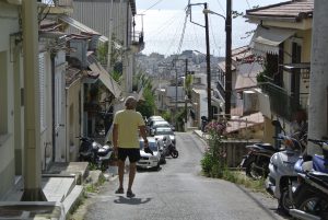Abermals starteten wir im Morgengrauen und legten Kurs Nordwest, Richtung Galaxidhi im Golf von Itea. Dabei konnten wir abermals ein paar kleinere Delphine in der Ferne beobachten. Fritz kannte Galaxidhi noch nicht und ich hatte ihn von 2013 in sehr guter Erinnerung. Wir blieben zwei Nächte (15€/N) und genossen diesen Ruhetag. Bei meinem Morgenlauf gabs mal wieder eine ungute Situation….ich lief bei einer Ansammlung von ca. 15 Bienenstöcken vorbei. Es flog kaum was herum, und doch stürzten sich einige dieser Viecher auf meinen Kopf und verkrochen sich in meinen Haaren…. ich versuchte sie mit gespreizten Fingern raus zu streifen und erhielt dabei einige Stiche. Blitzartig ging mein Puls (Pulsuhr) von 125 auf 155 und ich entschloss mich zur Umkehr. Fazit: nicht mehr bei Bienenstöcken vorbei laufen… nach zwei Stunden war wieder alles ok.