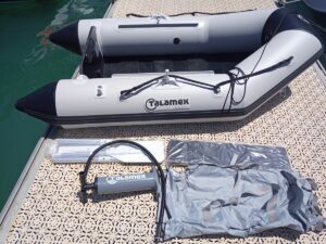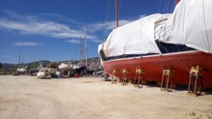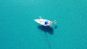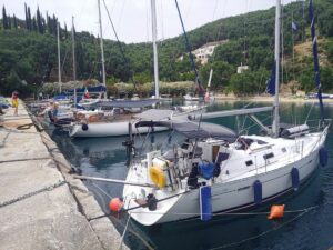 Während mein Sohn in Korfu zustieg, flogen Rosi und Nora einen Tag später von hier nach Hause. Clemens und ich fuhren nun wieder retour in den Süden. Wir ankerten abermals in Petriti und Two Rock Bay, bevor wir in Nidri beim Skorpios Ponton einen Verproviantierungsstopp einlegten. Tanken, Laundry Service, Einkauf, und eine Justierung des Schalthebels waren angesagt. Mein Mechaniker Yiannis erklärt mir dabei immer alles sehr genau, im kommenden Winter sollte jedenfalls ein Teil des Schaltgetriebes gewechselt werden. Zusätzlich tauschte ich mein Dinghi. Leider hatte meine Lieferung aus Deutschland nicht den bestellten Luftboden, sondern war gelattet. In Korfu fand ich Ersatz (Hercules 240Ki) auf welchem jetzt wieder die gesamte Besatzung (max. 4 Personen) Platz findet ohne gleich einen nassen Hosenboden zu haben…