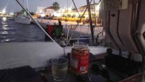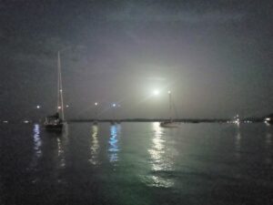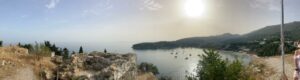 Mit dem Fernglas konnte ich das Treiben im Hafen Vasiliki beobachten. Hier war der Hafen bis zum Abend voll und auch in der Bucht kamen bis in die späte Dämmerung noch Schiffe herein. Unser Törn neigte sich nun bereits dem Ende zu.