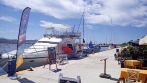 Von Lixouri (motor)segelten wir südwärts nach Zakynthos / Ag. Nikolaios, und staunten über massiven Ausflugsverkehr zu Wasser & Land. Ein starker Kontrast zu den Tagen vorher. Der Kai bei Dimitros war voll belegt, wobei vor allem die stets wachsende Anzahl der großen Katamarane auffiel.