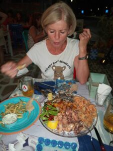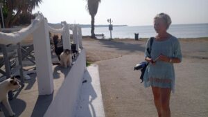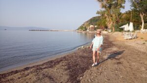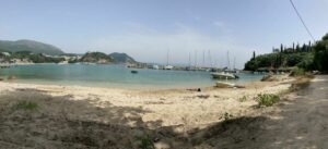 Hier war wieder gar nichts los, eine Hand voll Touristen am Strand und ein weiterer Segler vor Anker. Bei den Tavernen am Abend ein ähnliches Bild. Eigentlich beginnt jetzt die Hauptsaison und trotzdem scheinen viele Hotelzimmer und Appartements leer. Wir vergönnten uns einen Relaxtag und blieben noch eine zweite Nacht. Diese Bucht wird von den Seglern anscheinend übersehen – es blieb auch am zweiten Tag total ruhig.
