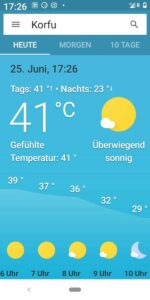 Die zwei Tage in Korfu Stadt waren geprägt von extremer Hitze mit Temperaturen bis 41 Grad. Ohne kühlendem Meerwasser und den Schattenplätzen beim Marina Strand wäre es kaum zum Aushalten gewesen.