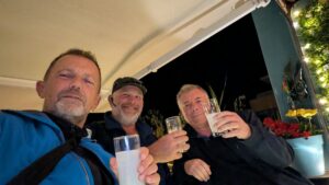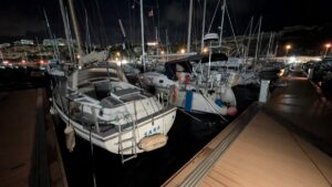 Inzwischen war es Abend geworden – Arbeitsschluss. Eigentlich hätte ich mit Walter und Claudia schon unterwegs sein wollen, doch die Calisto stand aufgebockt in der Werft, Walter und Manuela hatten ihre erste Bootsnacht also im Trockenen 🙁