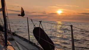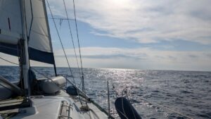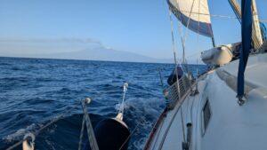 Als der Morgen kam gabs Kaffee und Frühstück, mein Hunger hielt sich aber insgesamt in Grenzen. Der Tag verlief ziemlich wellig, mit tollem Segelwind bis zum kommenden Abend.