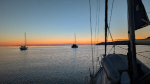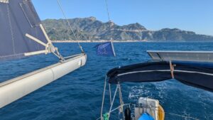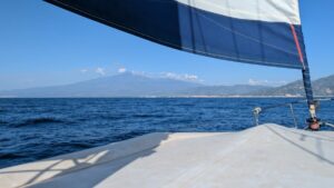 Die zweite Nacht war ich dann im Bereich der „Stiefelsohle“ von Calabrien Richtung Westen. Es gab kaum Wind und ich nahm den Motor bis gegen 04.00h dazu. Danach gings mit passendem Wind aus Nord ziemlich flott dahin.