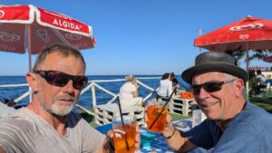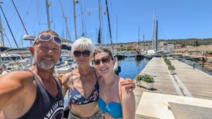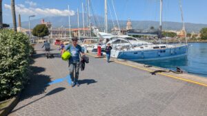 Am nächsten Vormittag segelte ich dann nur mehr 8 NM südwärts bis zur Marina Riposto (55/N) wo Klaus (ein Freund und Polizeikollege seit Polizeischulzeit) gegen Mittag von Catania eintraf und zu mir auf die Calisto kam.