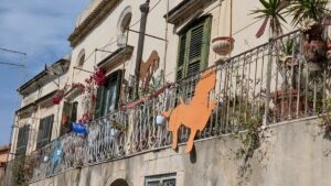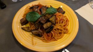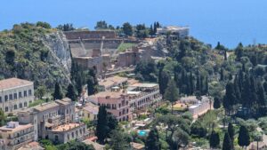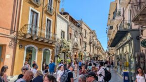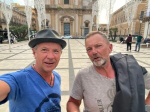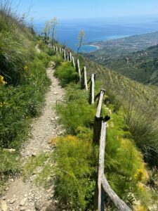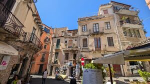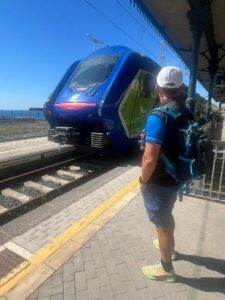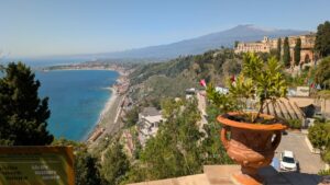 Ich hatte mich für zwei Tage eingebucht, denn am kommenden Morgen fuhren wir mit dem Zug zum etwa 25km entfernten Taormina, schlenderten durch die sehenswerten Gassen und bestiegen den über 800m hohen Monte Venere. Ein toller sonniger Tag. Die Rückfahrt mit dem 18.00h Zug war dann etwas stressig, denn es gab nur zwei (komplizierte) Fahrscheinautomaten und eine Schlange davor. Wenn der Zug nicht Verspätung gehabt hätte, wäre er trotz vorhandenem Zeitpolster davon gefahren….