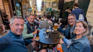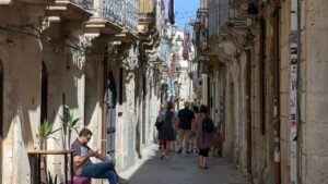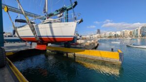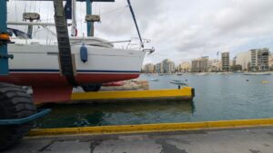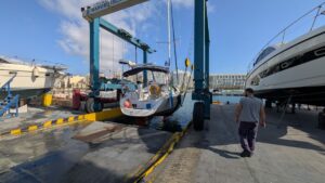 Nächsten Morgen rief ich bei der Werft an und eine Stunde später wurde bereits ein Elektriker mit einem kleinen Boot zur Calisto gebracht. Nach einigen Tests war das vermutliche Problem bei der Ankerwinsch entdeckt. Die fingerdicken Pluskabel des E-Motors hatten anscheinend ein Kontaktproblem und wurden vom Elektriker mitgenommen (letztendlich gegen neue Kabel ausgetauscht). Bzgl der Schaftdichtung musste die Calisto aus dem Wasser gehoben werden und das war für den kommenden Morgen 08.15h eingeplant. Inzwischen war Klaus ausgezogen, er hatte ein Zimmer gemietet und noch zwei Tage Zeit für Stadtbummel. Den Nachmittag und Abend verbrachte ich in Valletta, wobei wir uns in der Altstadt trafen. Meine Tiroler Freunde, Walter und Claudia waren in der Zwischenzeit auch in Malta gelandet und kamen ebenfalls zu uns. Es wurde eine gesellige Runde. Walter und Claudia sollten am nächsten Tag zu mir aufs Schiff kommen und ein paar Tage mitsegeln.