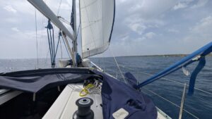Die Sonne schien prächtig, der Wind kam von der richtigen Seite, lediglich die Wellen zeigten sich die ersten Stunden etwas konfus und beutelten mich durch. Allerdings hatte ich diesmal nicht auf die Seekrankheitstabletten vergessen und ich muss sagen, es wirkte.