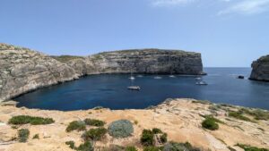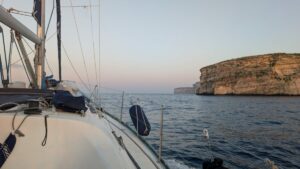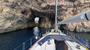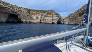 Diese ist nämlich tagsüber derart von Ausflugsbooten überlaufen, sodass wir dort bereits in der Morgensonne kurz ankerten und dann weiter die Westküste von Malta südwärts fuhren.