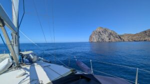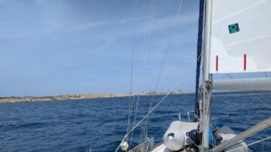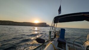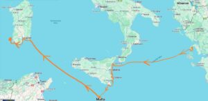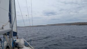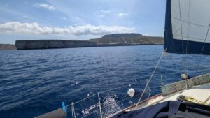 Tags darauf hatte sich das Wetter nachhaltig gebessert und ich konnte meinen Weg Richtung Sardinien fortsetzen. Ich startete diese über 300NM lange Strecke im Morgengrauen und fuhr entlang der Süd/Westküste von Gozo nach Westen. Es gab noch eine leichte Gegenwelle vom Starkwind der vergangenen Tage, welche aber in den nächsten Stunden komplett verschwand. Es kam leichter achterlicher Wind auf, also Segel gesetzt, was jedoch zu langsam war, weshalb der Motor noch ein Weilchen mitlief.
