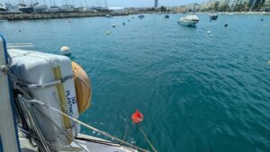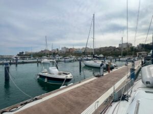 In der Früh war es etwas ruhiger, sodass wir um 07.00h bereits unterwegs waren. Für diesen Tag waren in Böen über 30Kn NW angesagt, weshalb ich in der nahen Marina Teulada einen Platz reserviert hatte (41/N ai). Diese lag nur 6NM entfernt, auf der westlichen Kapseite ganz im Norden der Bucht. Der Marinero meldete sich am Funk, wir konnten (es war erst 08.00h) in die Marina einfahren und bekamen einen guten Platz zugewiesen, der trotz 20Kn gut anzufahren war.