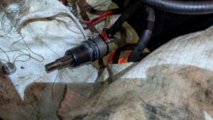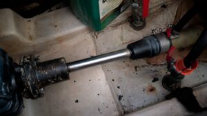 Denkste…. Der Flansch, mit welchem die Antriebswelle mit dem Getriebe verbunden war, wollte sich ums Verrecken nicht von der Welle lösen. Der Mechaniker werkte bis zum späten Nachmittag mit allen Mitteln, doch letztendlich ging es nur mit einem Hitzeschock (Schweißbrenner) Richtung Flansch und dieser löste sich nach 1 Minute! Danach das nächste Problem das Gewinde des Schaftes wurde durch diese Arbeiten beschädigt….