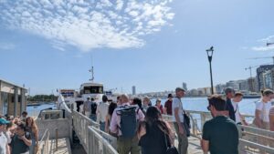 In der Nacht frischte der Wind etwas auf, die Ankerkette spannte sich immer wieder und mein Schlaf war nicht besonders erholsam. Es lag aber noch alles im grünen Bereich. Wir starteten trotzdem bereits gegen 07.00h, um noch bei halbwegs moderaten Windverhältnissen in der Marina anlegen zu können. Diesmal hatten wir einen LP an der Innenseite des Betonkai`s erhalten, wo es eindeutig ruhiger war. Der äußere Ponton kriegte im Laufe des immer mehr werdenden Südostwindes ganz schön Schwell ab und wackelte gewaltig. Die Temperatur lag inzwischen bei 30°, war aber durch den Wind leicht erträglich.